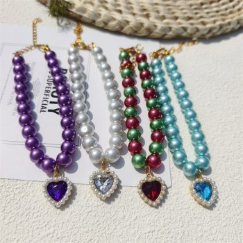 Cute Adjustable Pearl Pet Collar with Peach Heart Pendant for Small Dogs and Cats